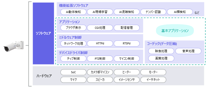- 組み込み技術、ネットワーク・サーバー技術、映像処理技術、AI検知技術といったフルスタックでのソフトウェア開発を行っている