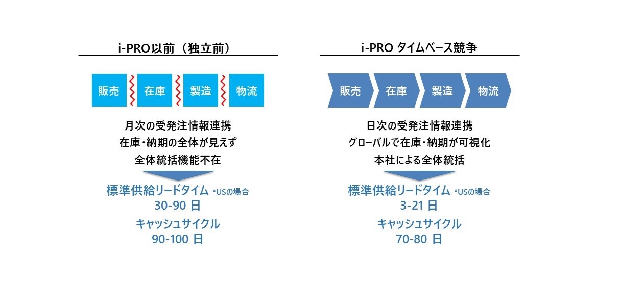 i-PROのタイムベース競争とは、次の2つの領域でオペレーショナル・エクセレンスを構築することを意味します。ひとつはエンジニアリングチェーン、すなわち製品開発のリードタイムであり、もうひとつはサプライチェーン、すなわち製造と物流のリードタイムです。これにより、どこよりも早くお客様へ最新の技術を提供し、最適サプライチェーンによって短納期を実現してお客様の時間価値を大切にします。